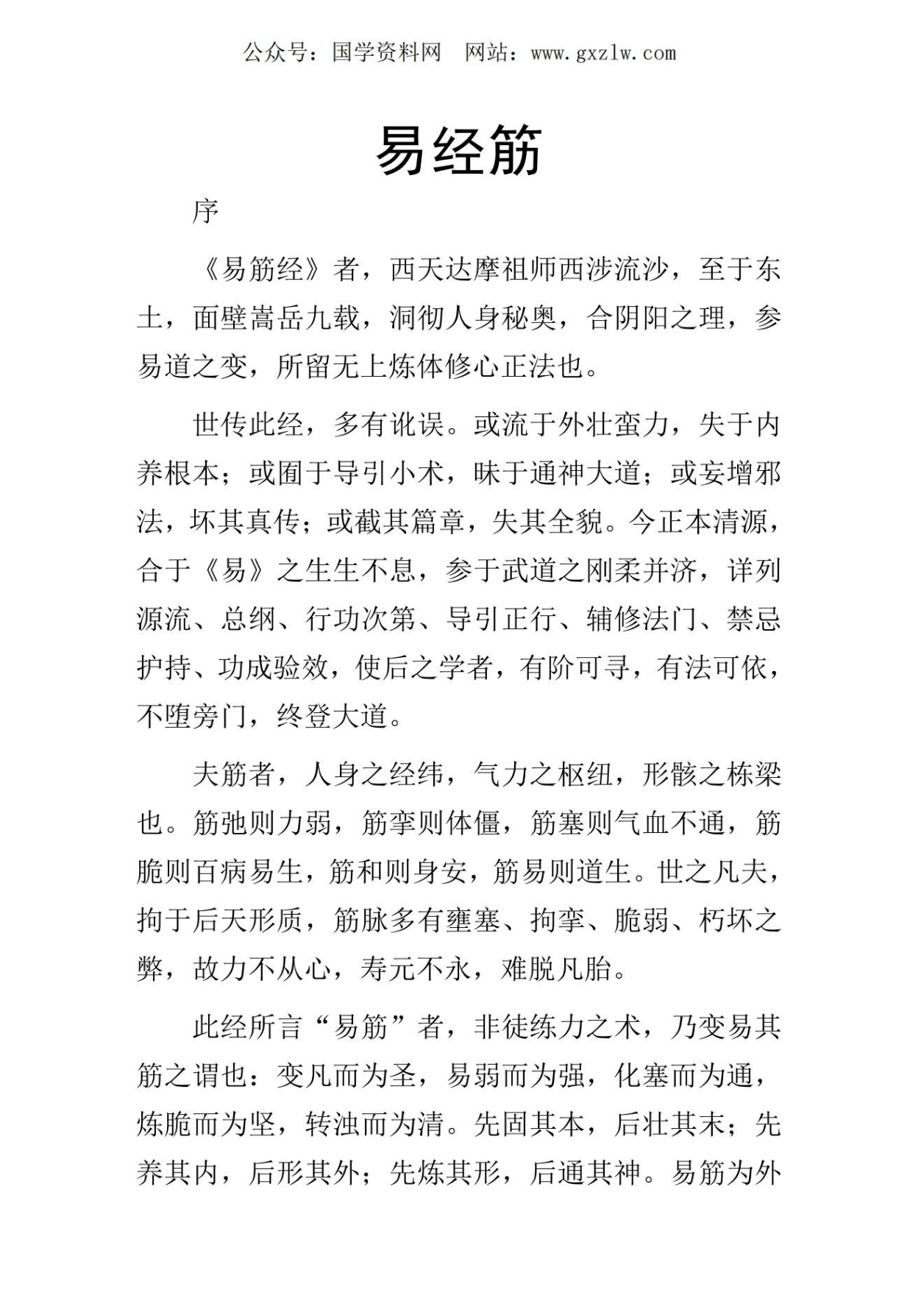 夫筋者,人身之经纬,气力之枢纽,形骸之栋梁也。筋弛则力弱,筋挛则体僵,筋塞则气血不通,筋脆则百病易生,筋和则身安,筋易则道生。世之凡夫,拘于后天形质,筋脉多有壅塞、拘挛、脆弱、朽坏之弊,故力不从心,寿元不永,难脱凡胎。