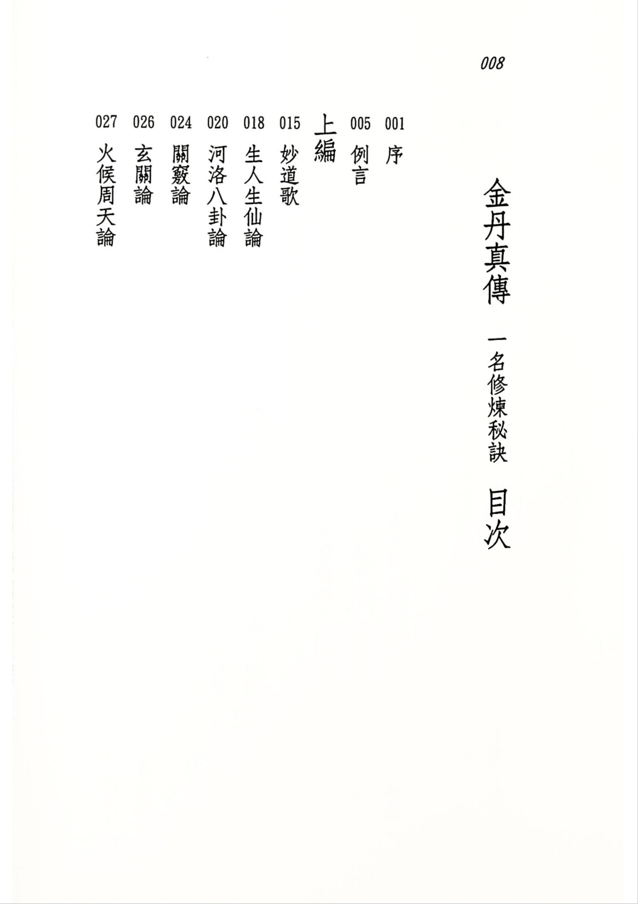 本书共分上下二编。上编言理。下编言诀。理无诀不行。诀无理不显。学者将理诀两者参而玩之。则一切玄机秘法。自能豁然贯通。灵珠在握矣。