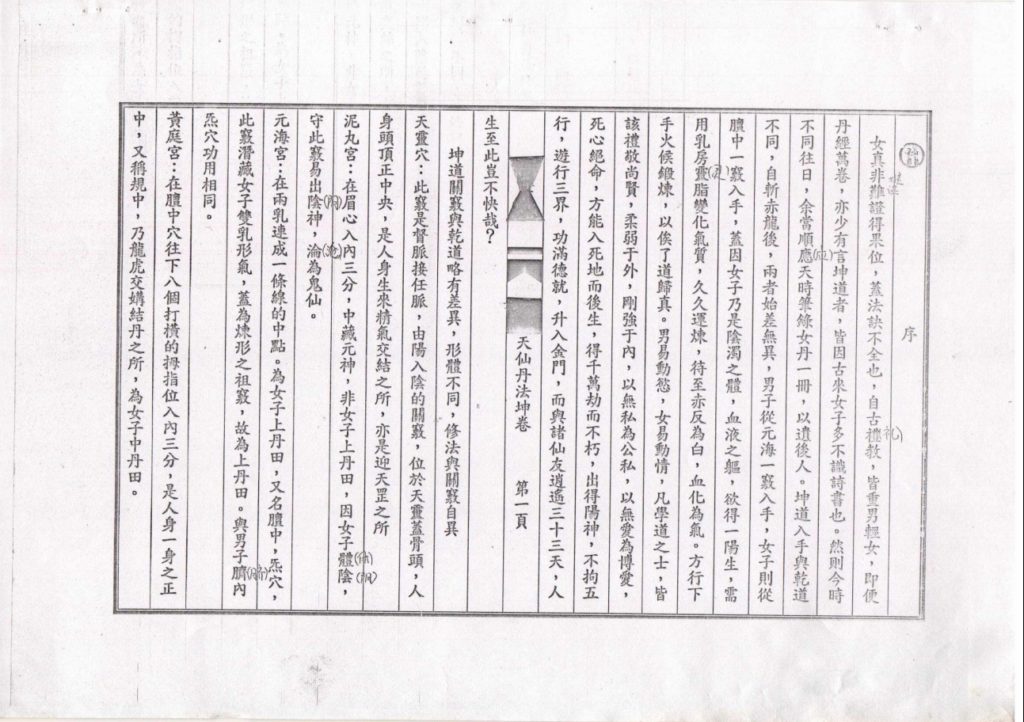仅仅十六页,步步直指天机,一别市面假传万卷书,不传火候的丹书。男女丹只有入手方法不同,女子到斩赤龙之后,所有的步骤都与男子相差无几,故此书目录与嫏嬛丹法乾卷有一部分相同。