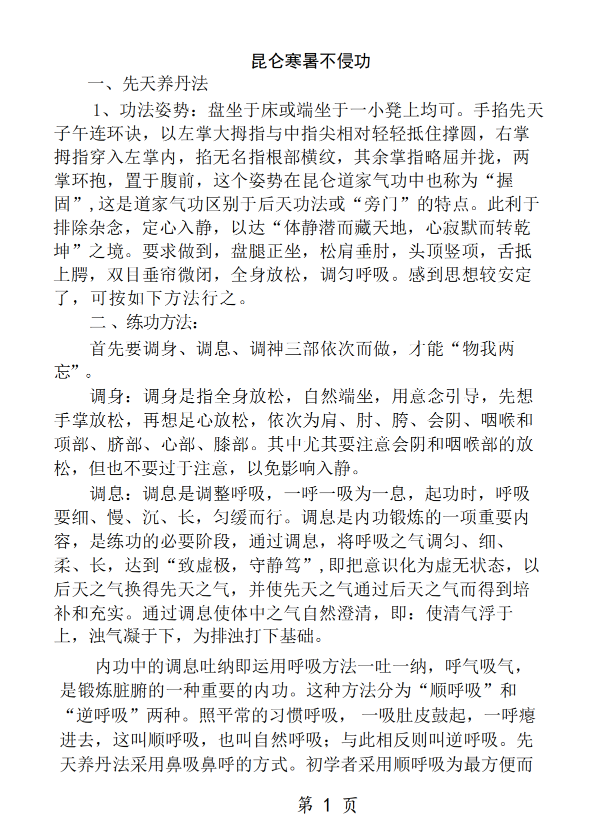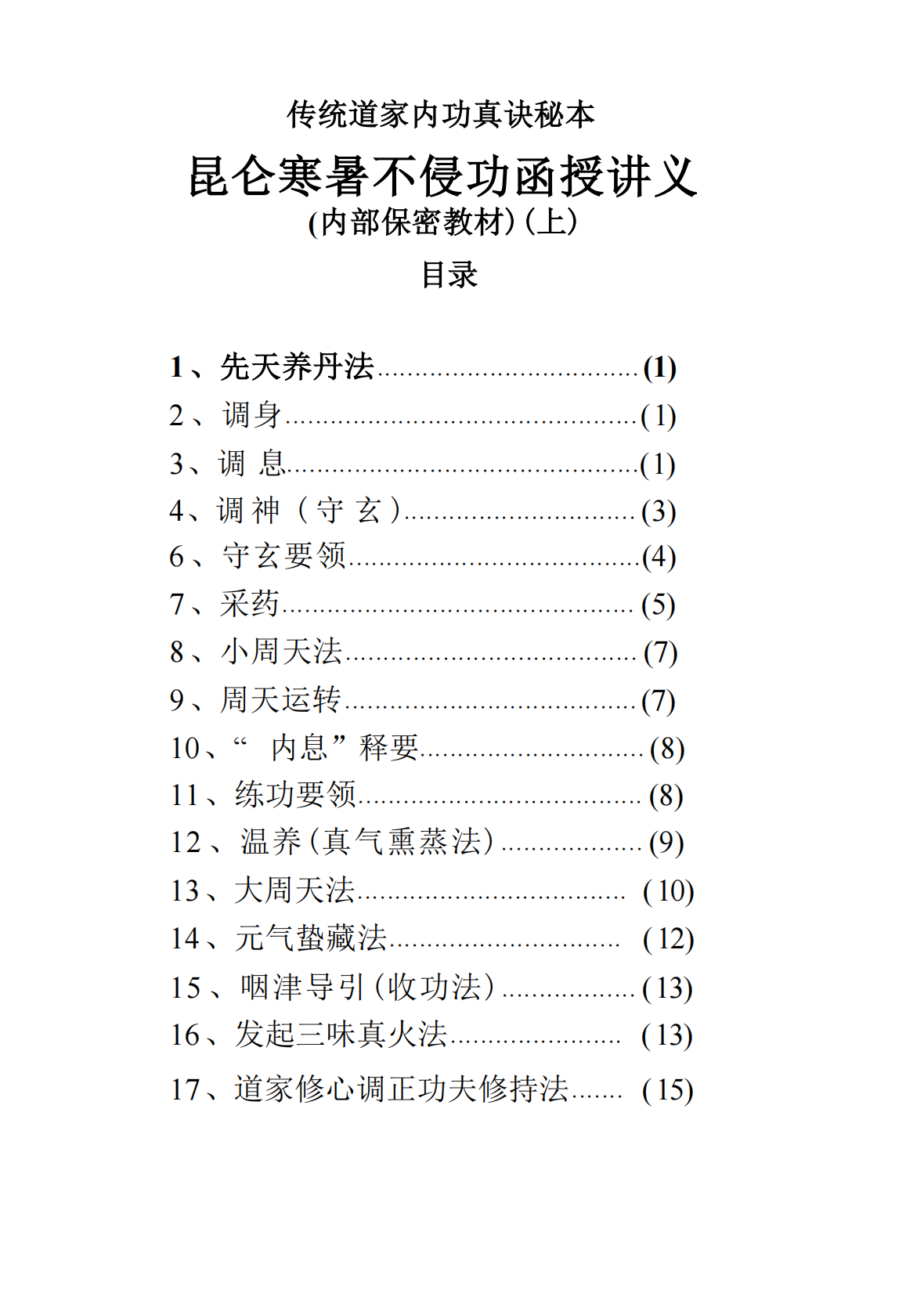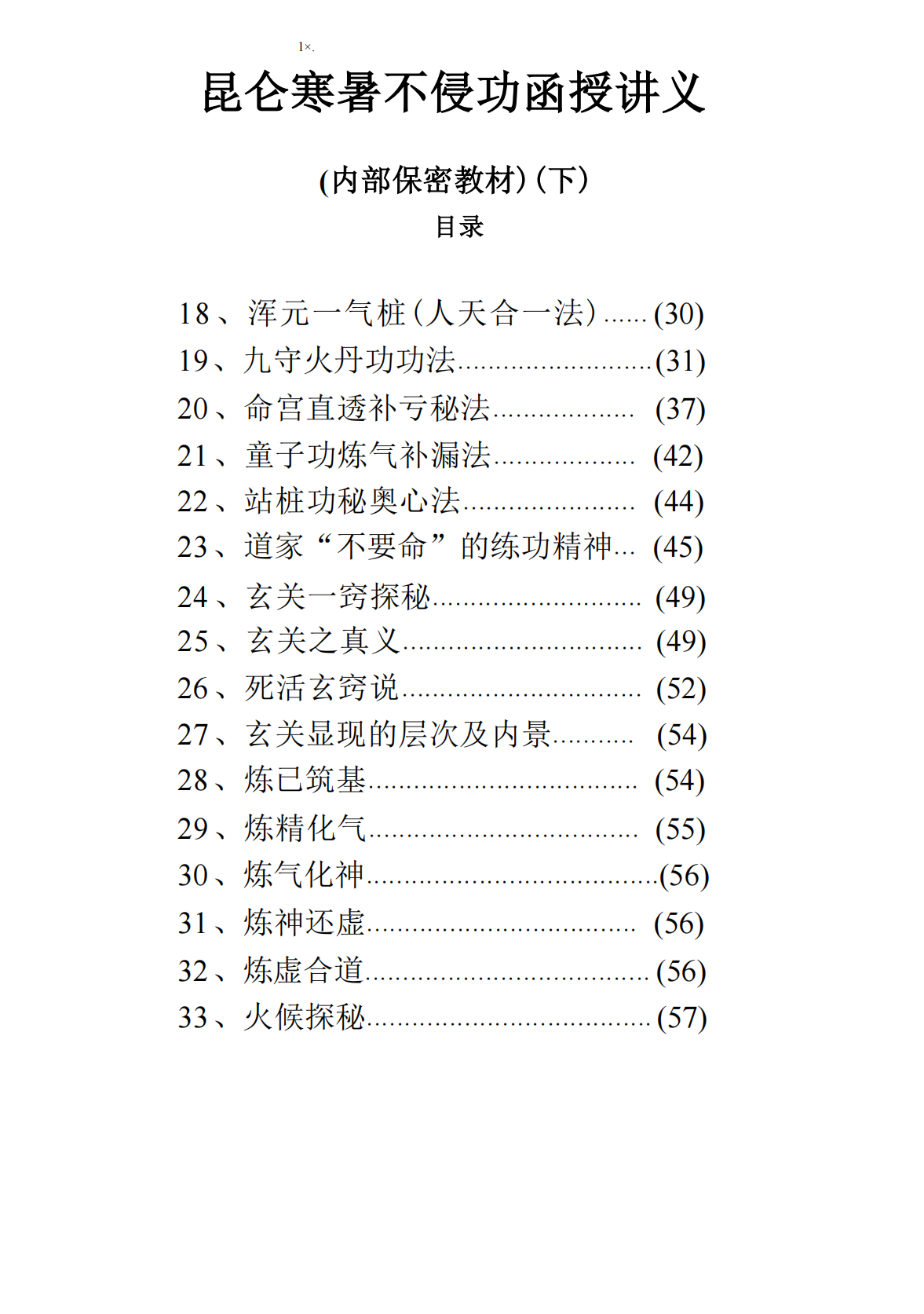 独家打印版昆仑寒暑不侵功函授讲义63页电子版